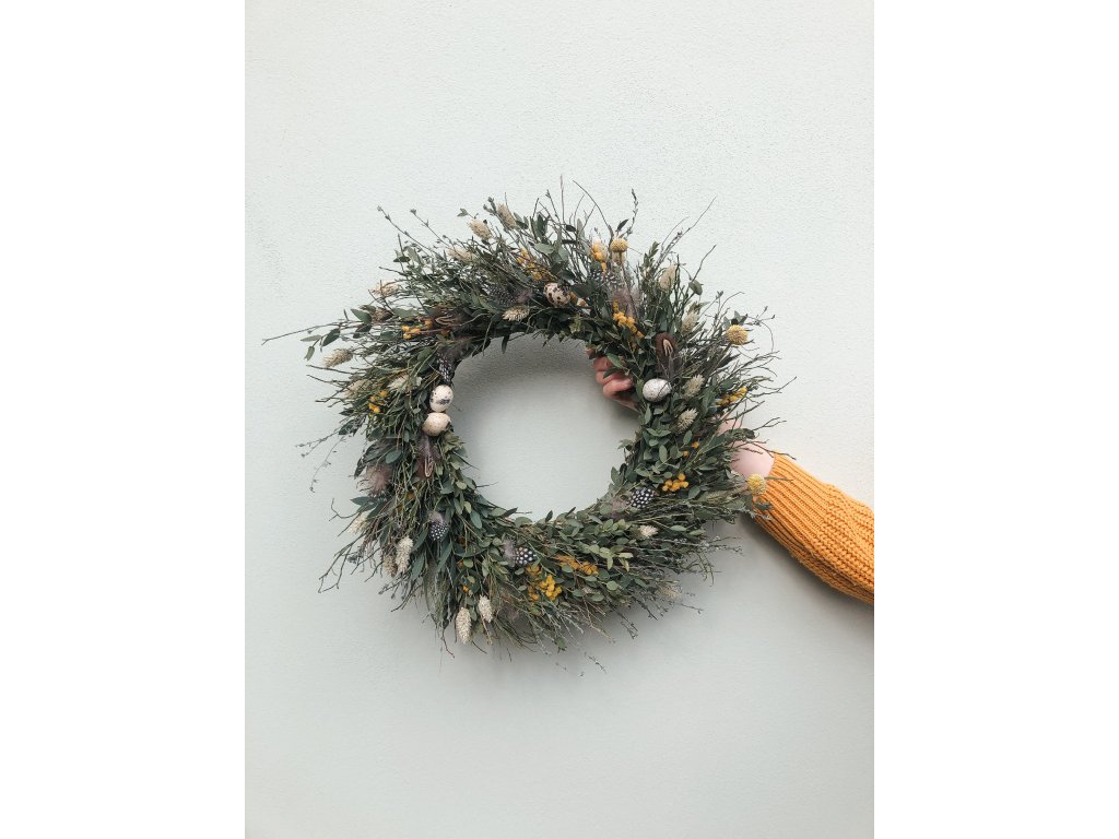 Během workshopu vás krok za krokem provedeme celým procesem výroby. Naučíte se, jak správně připravit základ věnce, kombinovat barvy i struktury a pracovat s živými i sušenými dekoracemi tak, aby věnec vydržel co nejdéle a působil harmonicky.