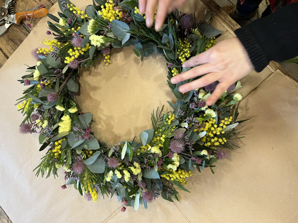 Během workshopu vás krok za krokem provedeme celým procesem výroby. Naučíte se, jak správně připravit základ věnce, kombinovat barvy i struktury a pracovat s živými i sušenými dekoracemi tak, aby věnec vydržel co nejdéle a působil harmonicky.