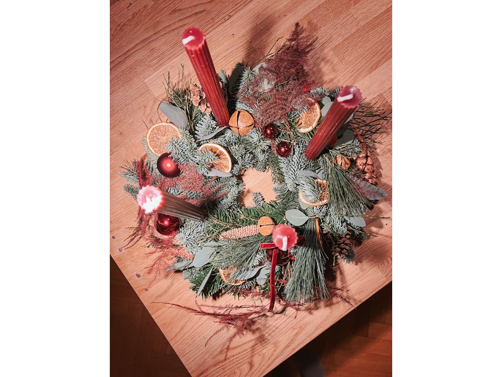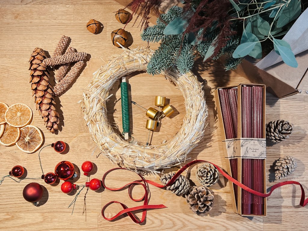 čerstvé jehličí, přírodní ozdoby, svíčky, drátky i pevný korpus. Navíc získáte videonávod, podle kterého vás provedu krok za krokem celým postupem.